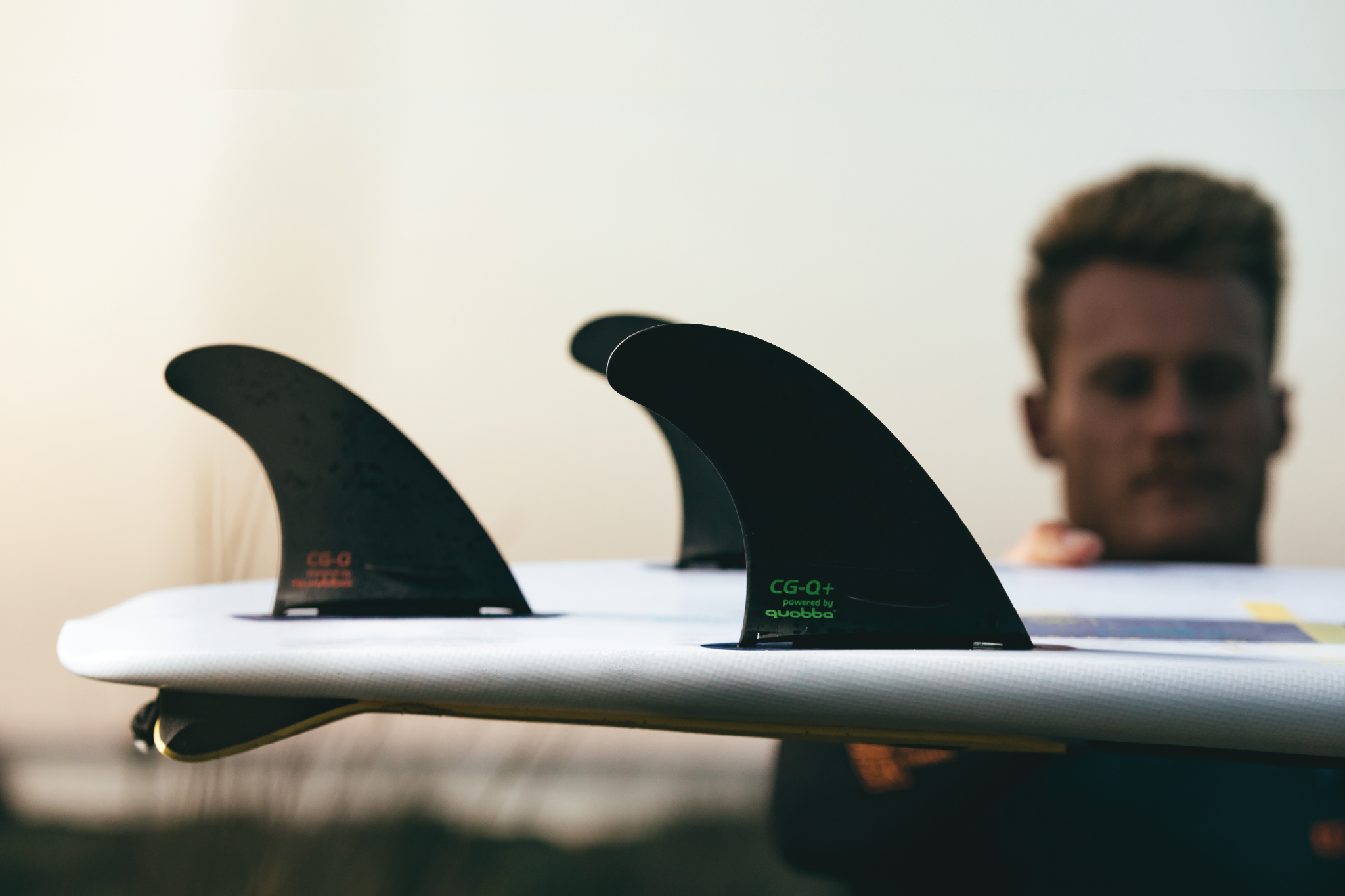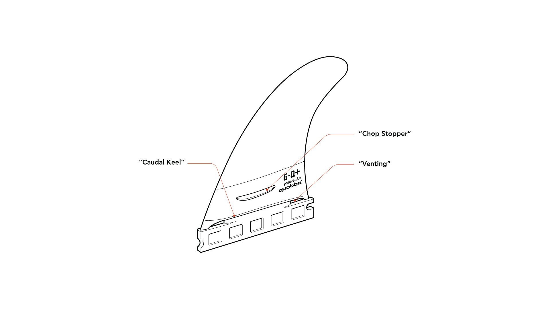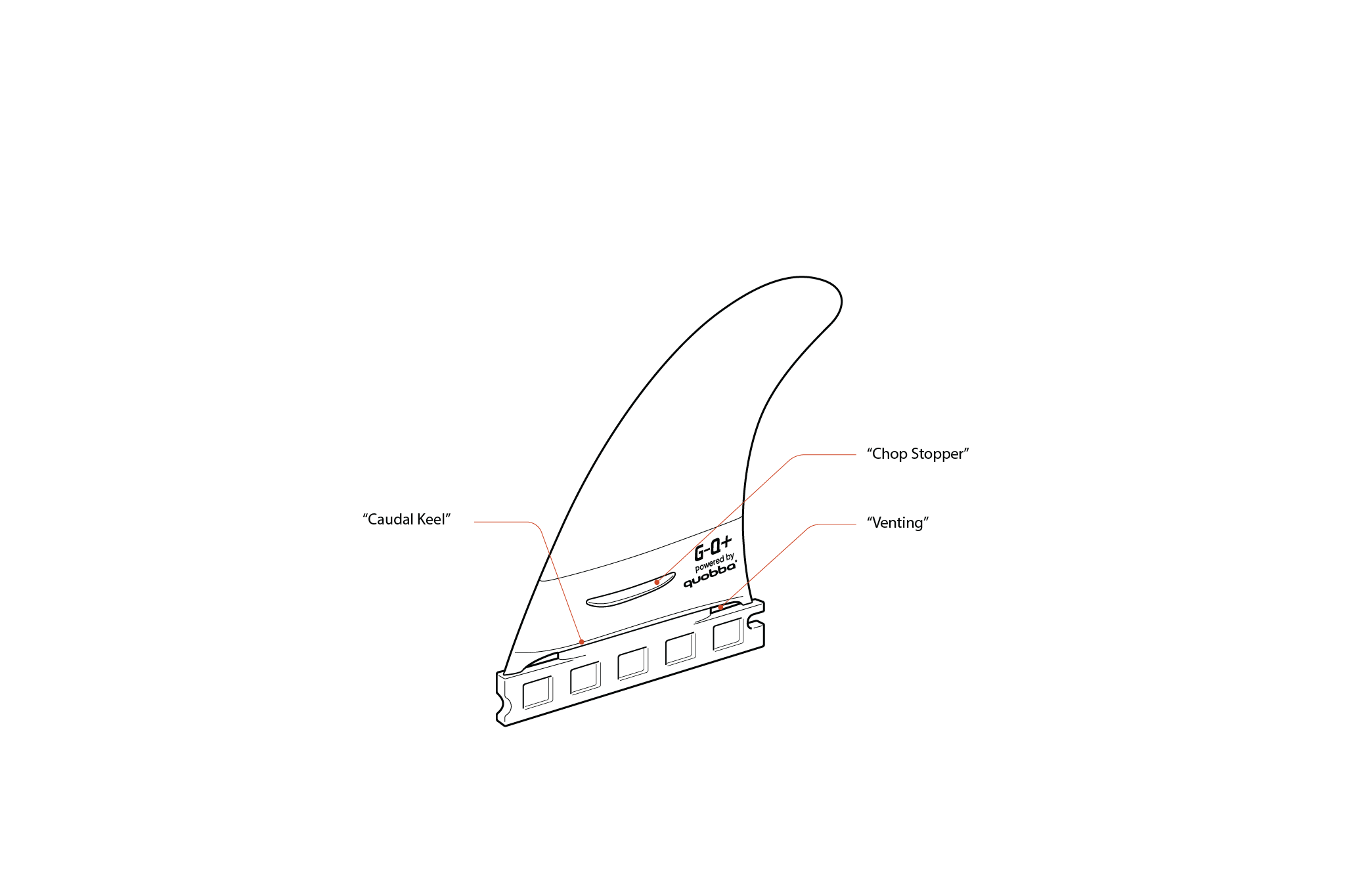 By shaping and ‘ordering’ the water flowing around the fin base, the Quobba fin system markedly reduces trailing turbulence drag, thereby increasing hold and speed in comparison to standard fin designs.