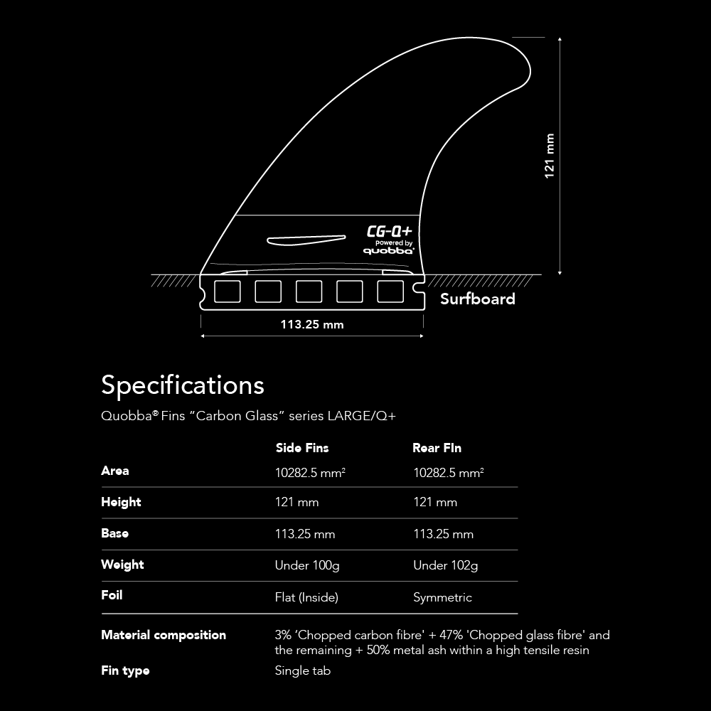 2 x ‘Carbon Glass’ series (Large) Size Quobba Fins
