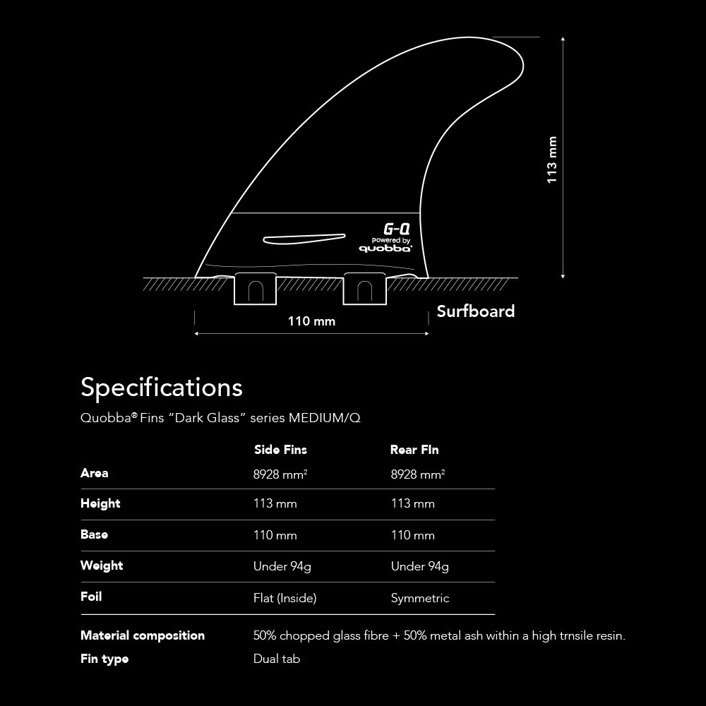 The Quobba fins ‘Dark Glass’ series have a standard raked fin type template.