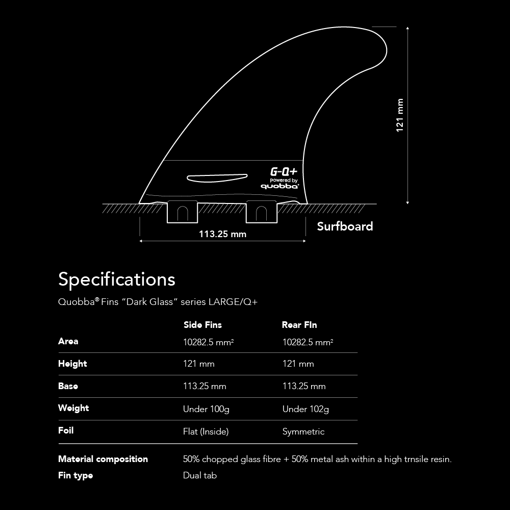 The Quobba fins ‘Dark Glass’ series have a standard raked fin type template.
