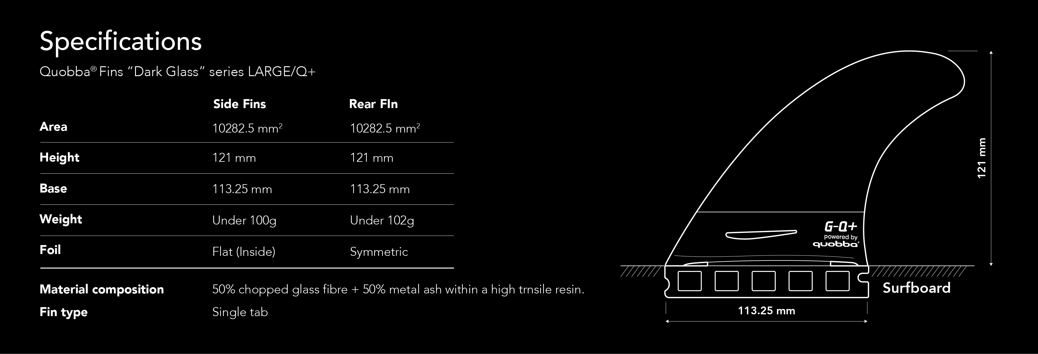 The Quobba fins ‘Dark Glass’ series have a standard raked fin type template.