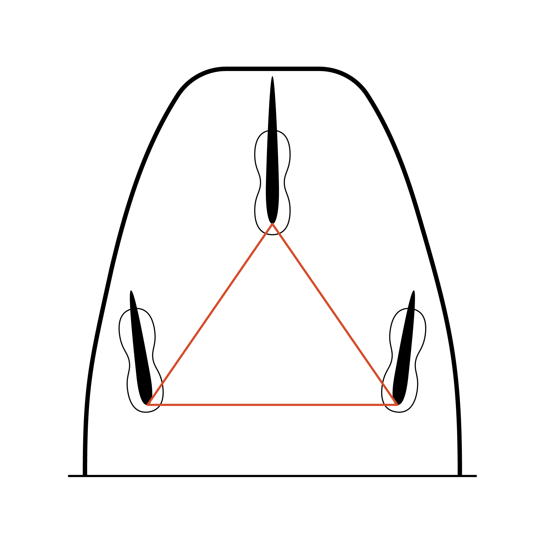 The red triangle represents the fin cluster (how the fins are placed).