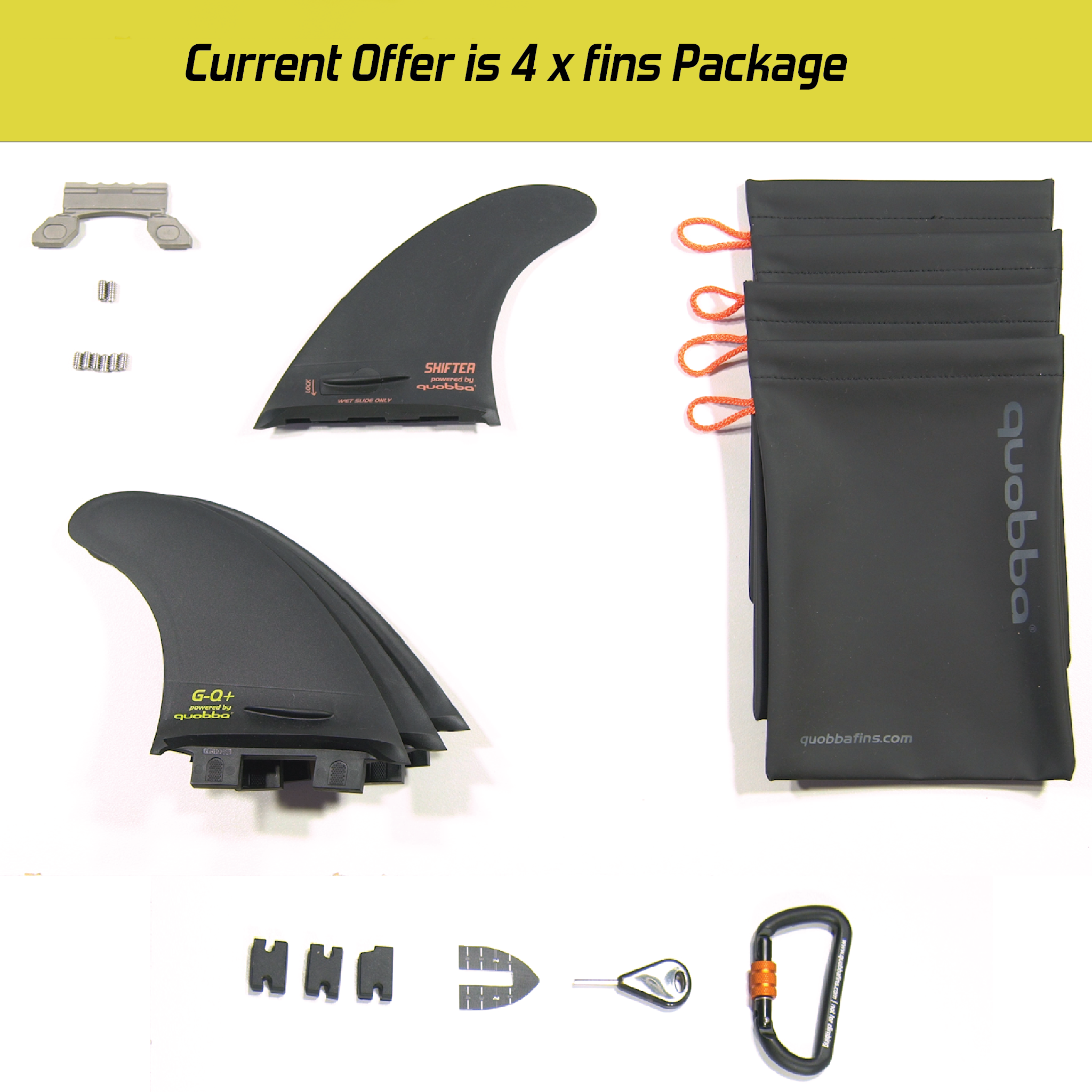 - Package includes 4 x fins (Shifter Fin Dual Tab + Thruster Set)
